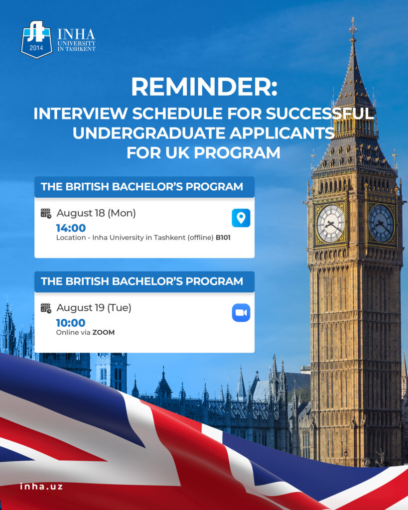 | 7 | S70145 | ERKABOYEV AKBAR | Online (via Zoom) – 19.08.2025 at 10:00 | 10:30 | |