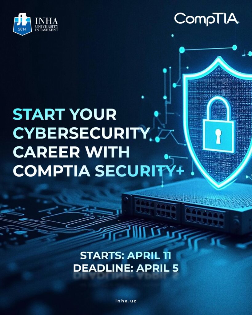 The Cybersecurity Center of Inha University in Tashkent is launching the CompTIA Security+ training course — one of the most recognized international certifications for beginners in IT security.