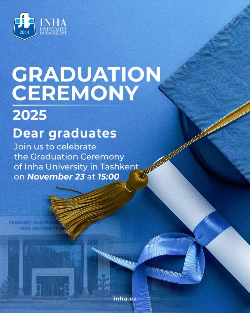 We are pleased to invite you to the graduation ceremony of Inha University in Tashkent, which will take place on November 23 at 15:00.