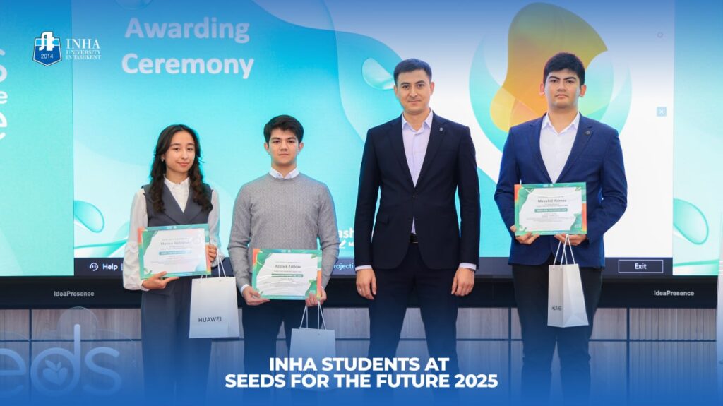 We are pleased to announce that students of Inha University in Tashkent Munisa Akhrarova, Azizbek Fattoev, and Mirvokhid Azimov have successfully passed the selection process and have become participants of the prestigious international project Huawei “Seeds for the Future 2025”. The students will participate in advanced ICT training from October 19 to 25, 2025, in Shenzhen, China.