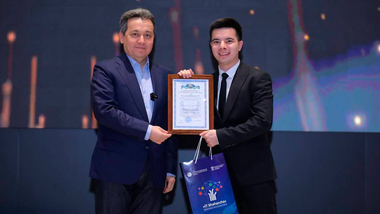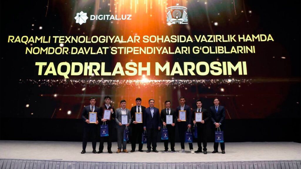 The award ceremony for the recipients of prestigious state scholarships for the 2025/2026 academic year was held, with certificates and awards personally presented by Sherzod Shermatov, Minister of Digital Technologies of Uzbekistan.