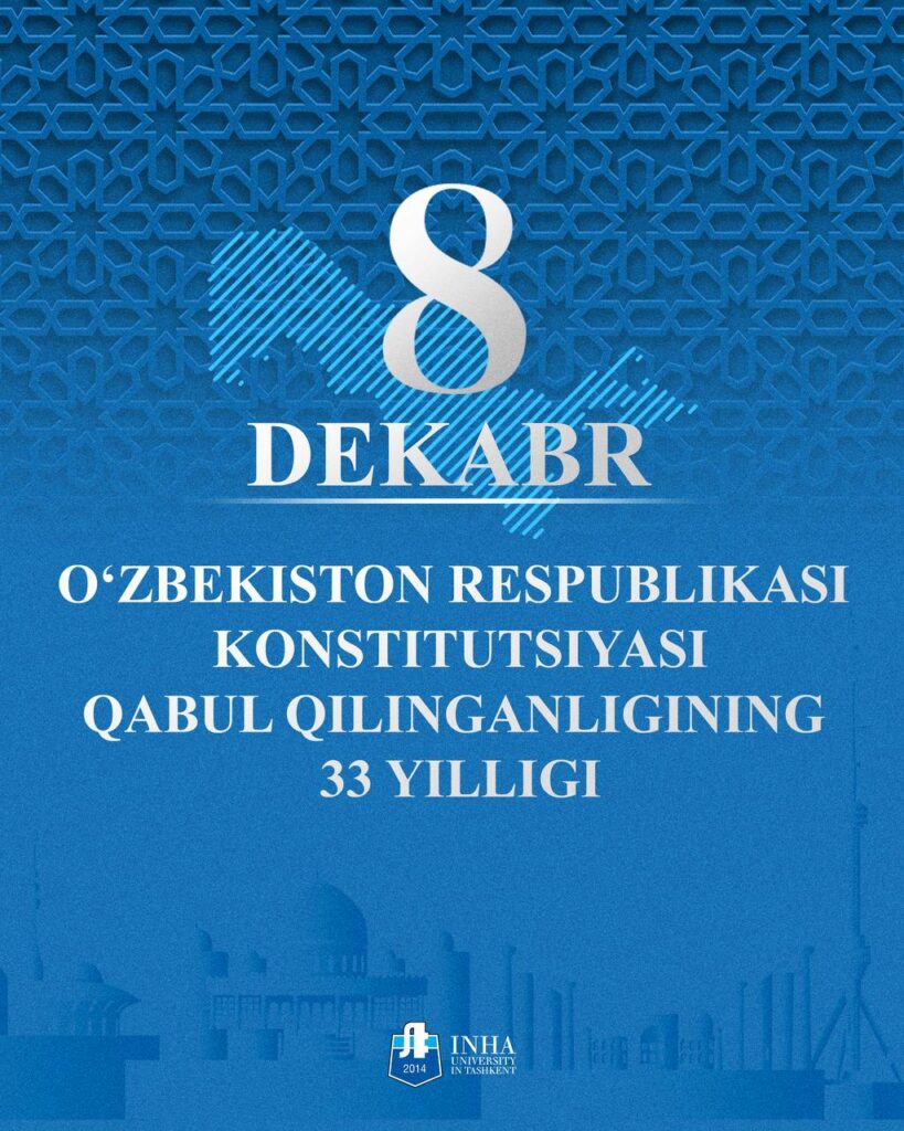 On behalf of the staff of Inha University in Tashkent, we congratulate you on December 8 – Constitution Day. We wish you success in your honorable work, happiness and good luck in your family life!