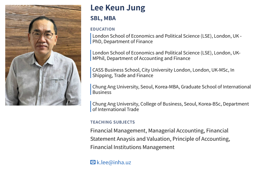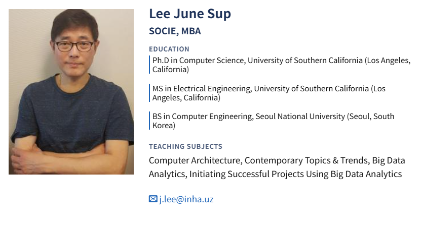 I completed the 1+1 MBA program in Digital Transformation at Inha University, which provided key competencies in digital innovation, strategic thinking, and data-driven decision-making. These skills have significantly enhanced my role as Head of the International Cooperation Department at Inha University in Tashkent, where I lead global partnerships and develop digital initiatives. The program deepened my knowledge in areas such as digital business, digital marketing, cloud computing, and the application of AI in business. It also enriched my understanding of Asian culture, and I’m proud to have graduated with an MBA that has broadened both my professional and personal horizons.