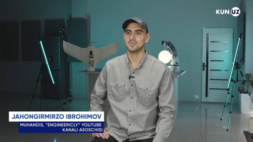Джахонгирмирзо Иброхимов окончил Университет Инха в Ташкенте. На своем канале YouTube он публикует на английском языке свои инженерные проекты, выполненные с помощью 3D-принтера. Его видеоролики набирают миллионы просмотров в разделе Shorts. Сначала он начинал эту работу в одиночку, но теперь у него целая команда.
