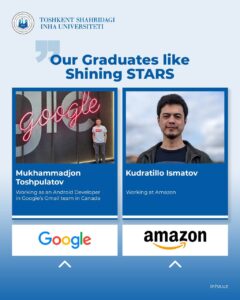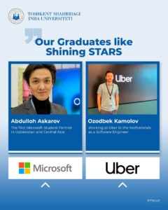 Выпускники Университета Инха в Ташкенте работают в ведущих компаниях не только в Узбекистане, но и по всему миру, применяя инновационные подходы и лидерские качества, которые мы развиваем в каждом студенте.