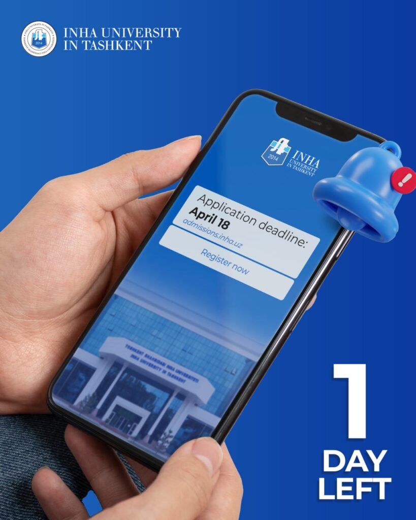 🔥ОСТАЛСЯ 1 ДЕНЬ до конца регистрации на программу бакалавриата в Университете Инха в Ташкенте.
