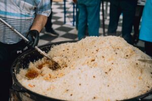 Также всех гостей ждало вкусное угощение – вкусный плов и сумаляк, которые были приготовлены в Университете Инха в Ташкенте.