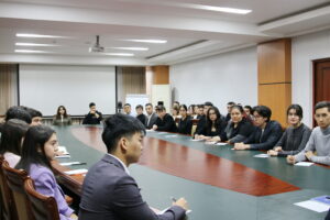 12 февраля ректор Университета Инха в Ташкенте Бобур Абдуллаев провел встречу с активными студентами лидерами различных студенческих организаций, представляющих как научные и технические клубы, так и творческие, социальные и спортивные объединения. Бобур Абдуллаев выслушал каждого из них, интересуясь их деятельностью, достижениями и трудностями, с которыми они сталкиваются.