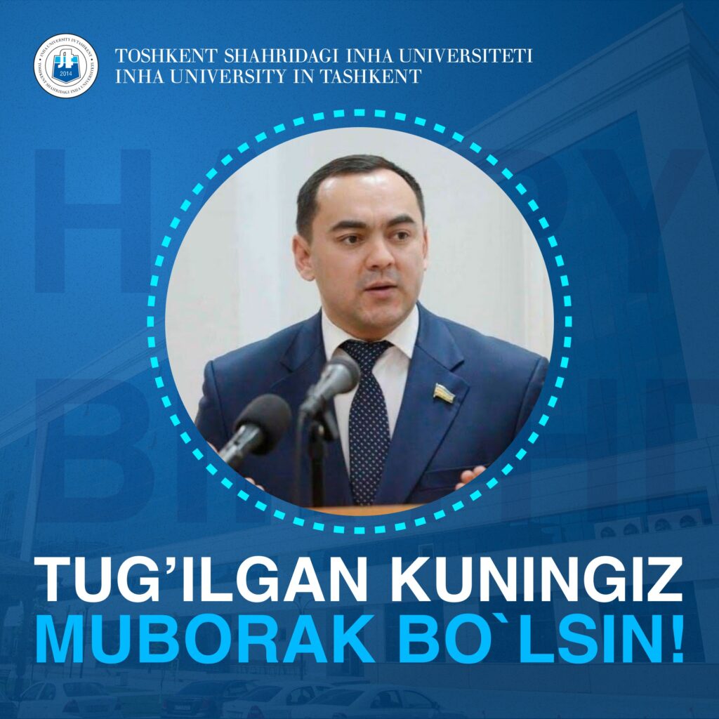Toshkent shahridagi Inha universiteti jamoasi O’zbekiston Respublikasi oliy va o’rta maxsus ta’lim vaziri Toshkulov Abdukodir Hamidovichni tavallud ayyom kuni bilan chin qalbdan tabriklaydi!