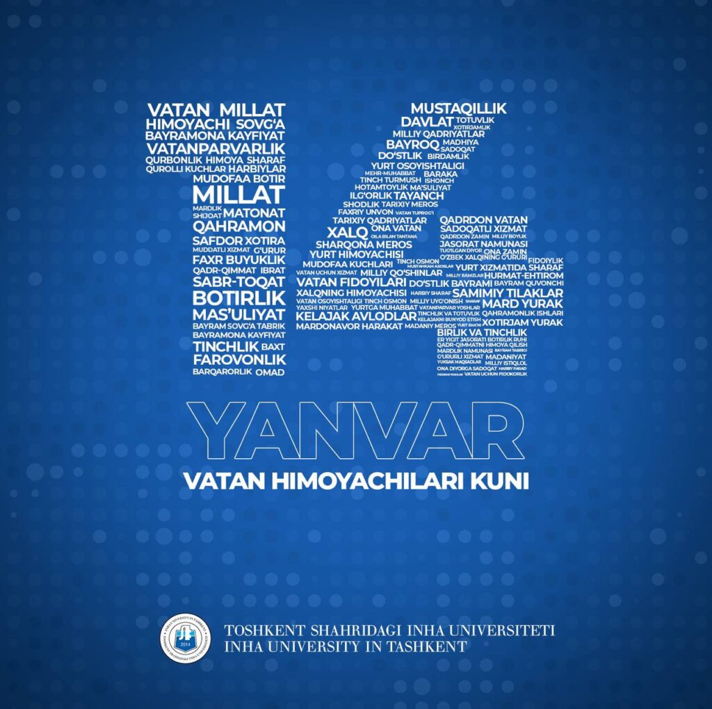 Ushbu bayramona kunda Vatanimiz himoyachilariga chuqur hurmat-ehtirom tuyg’usini e’tirof etamiz! Biz barchangizni tabriklaymiz va professional hayotingizda omad, jasoratli marralar va munosib g’alabalar tilaymiz! Sizning barcha say-harakatlaringiz Vatanimiz rivojida o’z ifodasini topsin!