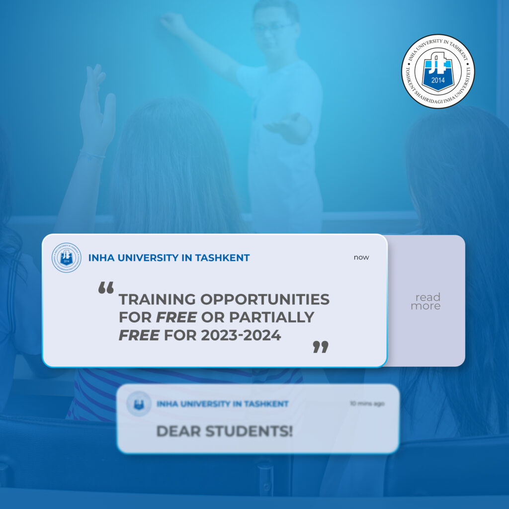 Bu yil Toshkent shahridagi Inha universitetining birinchi kurs talabalari uchun 90 ta davlat granti ajratildi. Bu qabul qilingan talabalar umumiy sonining 20 foizini tashkil qiladi.