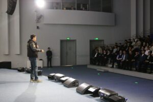 Unda Inha universiteti rektori Muzaffar Djalalov «Hozirgi va kelajakdagi IT-yo‘nalishlar» mavzusida so‘zga chiqdi. Muzaffar Djalalov mehnat bozorida talab yuqori bo‘lgan IT-mutaxassislar ega bo‘lishi lozim bo‘lgan ko‘nikmalarni ta’kidlab o‘tib, yoshlarni qiziqtirgan barcha savollarga javob berdi.