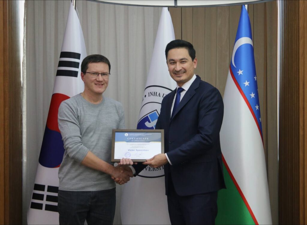 2022-yil 26-dekabr kuni Toshkent shahridagi Inha universiteti rektori Muzaffar Djalalov Kiberxavfsizlik sohasida qo‘shma ta’lim dasturlarini muvaffaqiyatli amalga oshirilgani munosabati bilan «Check Point Certified Security Administrator» hududiy menejeri Viktor Spesivtsevga tashakkurnoma topshirdi 👏