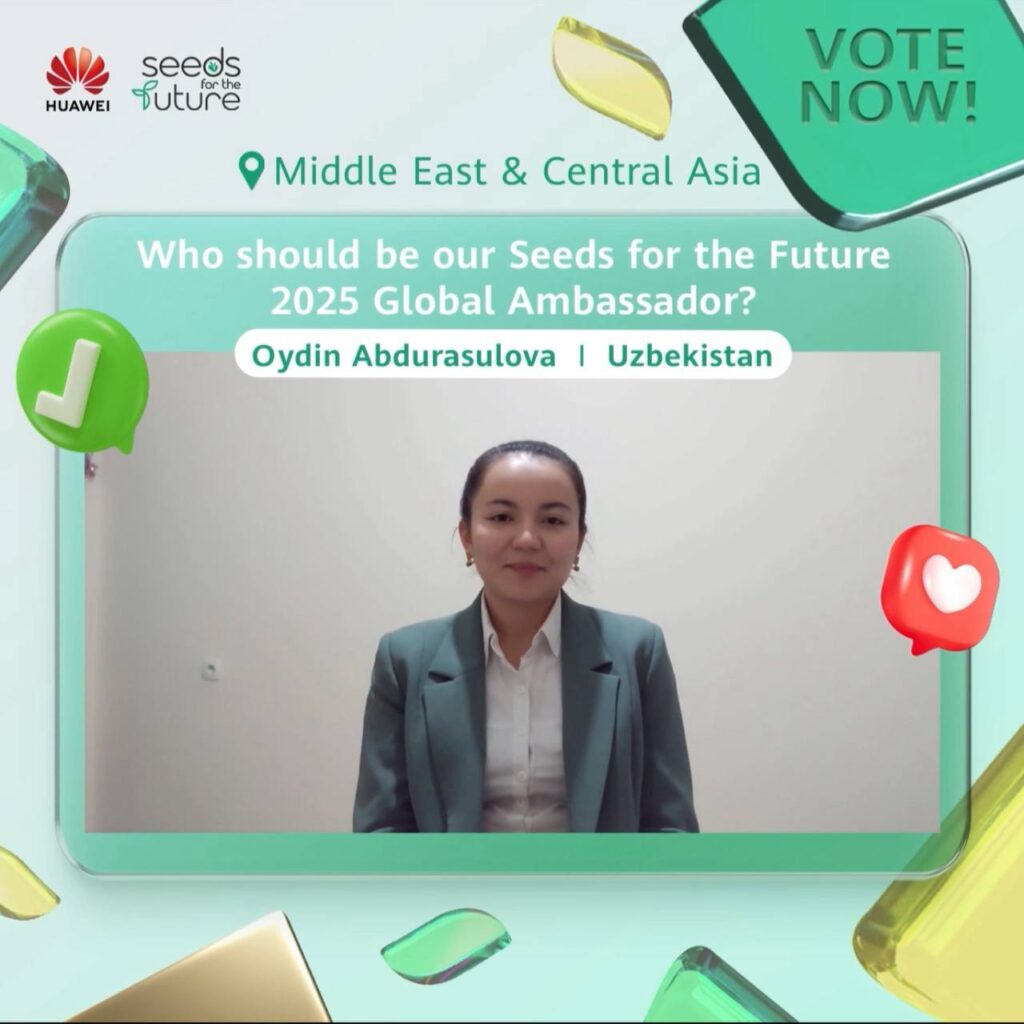 Bu yil bizda O’zbekistondan #SeedsForTheFuture 2024 ishtirokchisi Oydin Abdurasulovani Huawei Global Seeds for the Future Ambassador yillik tanlovida qo’llab-quvvatlash imkoniyati mavjud!